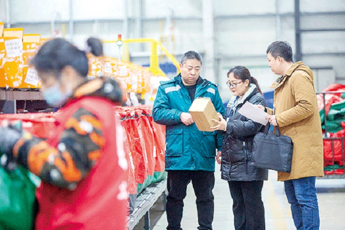河南省漯河市郾城區(qū)紀(jì)委監(jiān)委緊盯“四風(fēng)”新動向、新表現(xiàn),嚴(yán)查快遞送禮等隱形變異行為。圖為該區(qū)紀(jì)檢監(jiān)察干部在轄區(qū)物流園區(qū)核實相關(guān)問題線索。王曉 攝