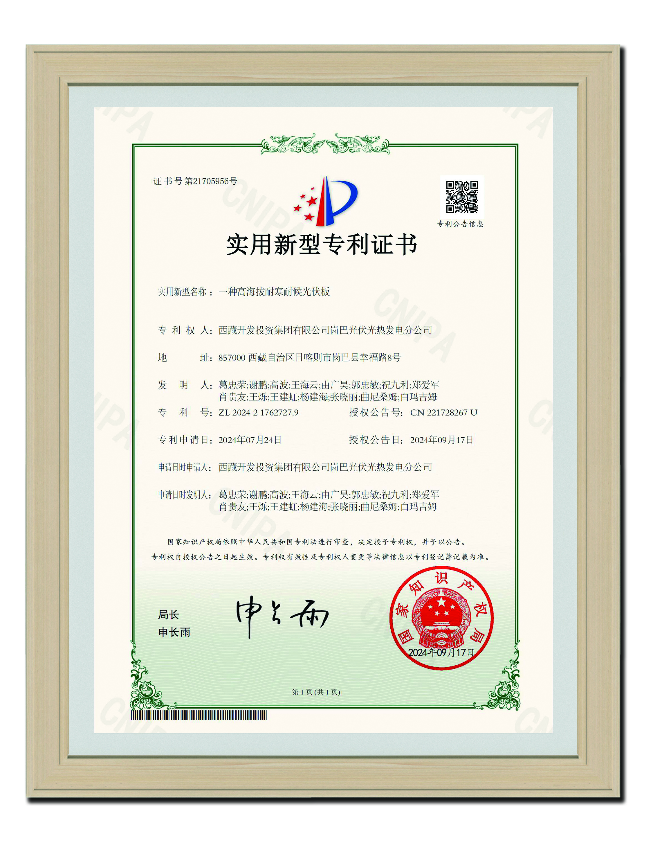 2024-09-17 實(shí)用新型專利證書_一種高海拔耐寒耐候光伏板