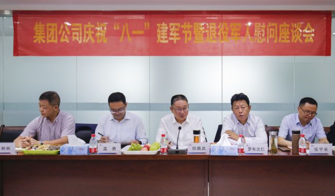 為慶祝中國人民解放軍建軍95周年,8月1日,西藏開發(fā)投資集團(tuán)有限公司召開慶“八一”退役軍人座談會,向公司軍轉(zhuǎn)干部及退伍復(fù)員軍人致以節(jié)日慰問。集團(tuán)公司黨委書記、董事長祁騰武出席會議并講話,集團(tuán)公司黨委委員、區(qū)紀(jì)委監(jiān)委駐集團(tuán)公司紀(jì)檢監(jiān)察組組長羅布次仁出席會議,集團(tuán)公司黨委委員、副總經(jīng)理、工會主席、機(jī)關(guān)黨委書記溫勇主持會議。