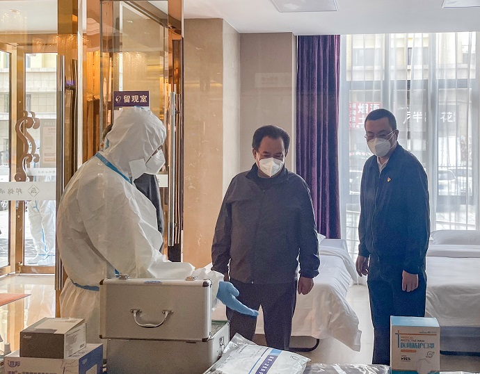 多吉次珠一行詳細(xì)察看了西藏開投邦錦花園酒店出入登記點(diǎn)、留觀室、疫情防控物資儲(chǔ)備室、全日制餐廳等區(qū)域,聽取了酒店疫情防控工作匯報(bào)。聽取匯報(bào)后,多吉次珠對酒店全力做好一線抗疫醫(yī)務(wù)工作者和公安民警后勤保障工作給予高度評價(jià)。他指出,西藏開投邦錦花園酒店站位高、有擔(dān)當(dāng),主動(dòng)承擔(dān)抗疫一線干部職工保障工作重要任務(wù),充分彰顯了國企擔(dān)當(dāng)、國企速度、國企精神,有力發(fā)揮了國資國企的“頂梁柱”作用。