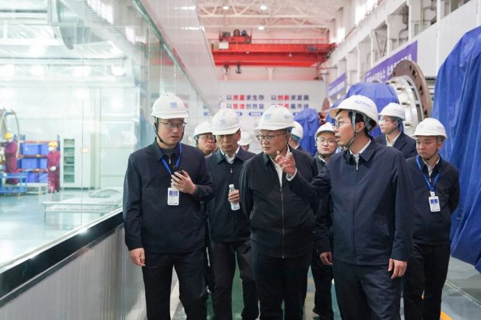 調(diào)研期間,祁騰武一行先后赴東方電機重跨車間、金模沖剪分廠,東方汽輪機工業(yè)透平總裝車間、葉片數(shù)字化黑燈生產(chǎn)線,東方鍋爐氫能示范園、容器一分廠等廠區(qū),實地了解其生產(chǎn)工藝、核心技術落地應用等情況。