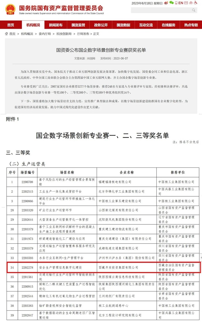 捷報(bào)傳來(lái)丨西藏開(kāi)投集團(tuán)榮獲國(guó)企數(shù)字場(chǎng)景創(chuàng)新專業(yè)賽生產(chǎn)運(yùn)營(yíng)類(lèi)三等獎(jiǎng)