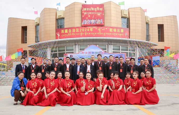 6月28日晚,西藏阿里群眾文化藝術館人潮涌動,歌聲飛揚。由自治區(qū)黨委宣傳部主辦的“西藏自治區(qū)2024年迎‘七一’暨‘唱支山歌給黨聽’紅色歌曲歌詠比賽決賽正式拉開帷幕,共有來自全區(qū)不同單位行業(yè)的15支代表隊伍同臺競技,共同獻禮黨的百年華誕。當晚21時,開幕式準時開始。在多彩燈光的映襯下,象雄古韻·天上阿里的原生態(tài)和《再唱山歌給黨聽》《沒有共產(chǎn)黨就沒有新中國》《我和我的祖國》等一曲曲耳熟能詳?shù)募t色歌曲交相輝映、相繼登場,將全區(qū)各族兒女和廣大黨員干部職工愛黨愛國愛藏的情懷淋漓盡致展現(xiàn)。