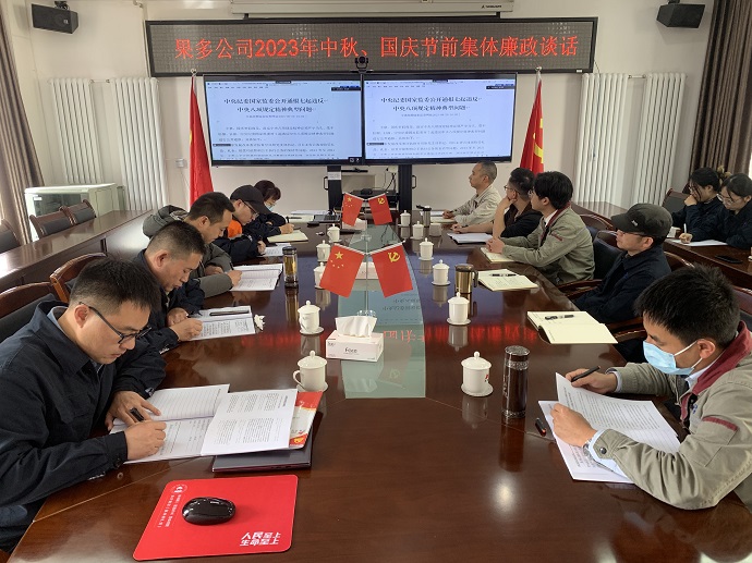 為進一步落實黨風廉政建設主體責任,強化落實中央八項規(guī)定精神,進一步改進作風,確保廉潔文明過節(jié),在中秋、國慶雙節(jié)來臨之際,中共西藏開投果多水電有限公司支部委員會組織全體干部職工開展節(jié)前集體廉政談話。