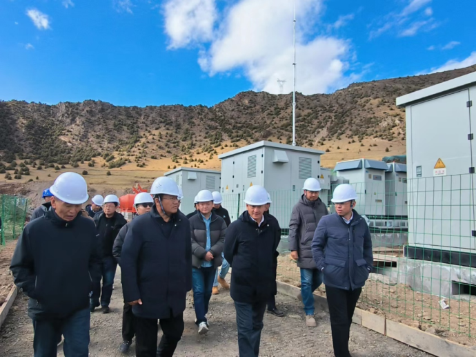 旦巴深入升壓站、儲能系統(tǒng)、中控室等電站生產(chǎn)一線,先后察看了升壓站和光伏區(qū)現(xiàn)場情況,并聽取項(xiàng)目進(jìn)度、質(zhì)量、安全環(huán)水保及生產(chǎn)運(yùn)維準(zhǔn)備等方面的匯報(bào)。