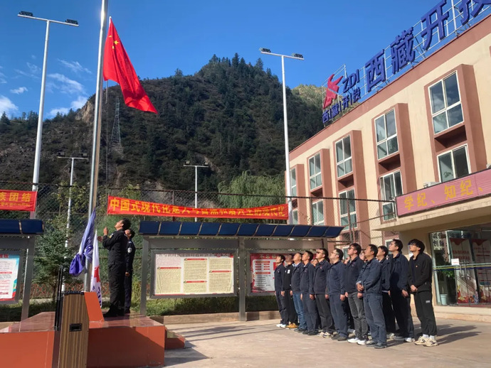 10月1日,果多水電公司全體干部職工在辦公樓前整齊列隊(duì)。隨著莊嚴(yán)肅穆的音樂(lè)聲響起,升旗儀式正式開始,鮮艷的五星紅旗冉冉升起,迎風(fēng)飄揚(yáng),全體干部職工面向國(guó)旗行注目禮,共同表達(dá)對(duì)祖國(guó)的忠誠(chéng)和熱愛(ài)。