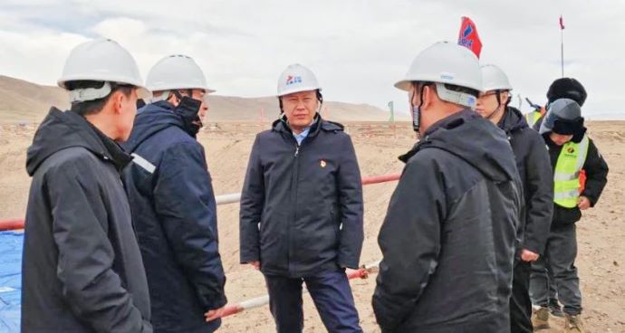 4月8日,那曲市政協副主席、安多縣委書記高軍濤一行赴西藏開投安多縣土碩100MW光熱+800MW光伏一體化項目調研。安多縣委常委、常務副縣長王秋貴,西藏開投那曲河水電公司總經理、總工程師何驍陪同。