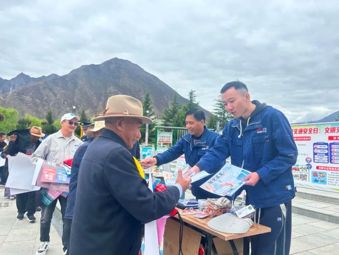 活動現(xiàn)場,嘎堆水電公司工作人員向過往群眾發(fā)放防汛避險手冊、應急自救指南等宣傳資料,并耐心解答各類咨詢和疑問,針對生活中的安全事項進行提醒,以“面對面、零距離、互動式”方式,細致講解災害預防知識、隱患排查技巧和應急處置方法。
