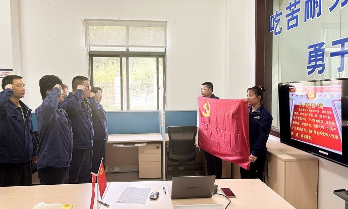 活動(dòng)伊始,莊嚴(yán)的升國旗、唱國歌儀式在嘎堆水電公司生活營地舉行,鮮艷的五星紅旗在全體黨員和員工的注目禮中冉冉升起,雄壯的國歌聲響徹云霄。接著,嘎堆水電公司黨支部組織新黨員在黨員活動(dòng)室舉行了入黨宣誓儀式,并開展了重溫入黨誓詞活動(dòng)。隨后,嘎堆水電公司黨支部書記謝鵬為大家上了一堂生動(dòng)的專題黨課。黨課圍繞黨的創(chuàng)新理論、黨的基本知識(shí)、黨的百年奮斗史、新時(shí)代偉大成就等方面展開,引導(dǎo)黨員們奮進(jìn)新征程、建功新時(shí)代。最后,黨員干部職工齊聚一堂,暢談黨的光輝歷程和豐功偉績(jī)。大家紛紛表示,立足崗位比貢獻(xiàn),進(jìn)一步發(fā)揮好黨組織的戰(zhàn)斗堡壘作用和黨員的模范表率作用。