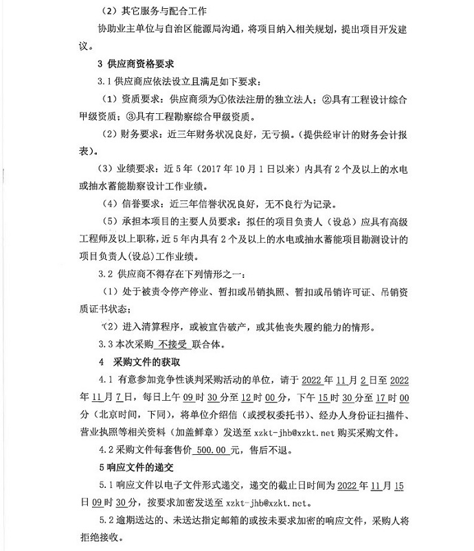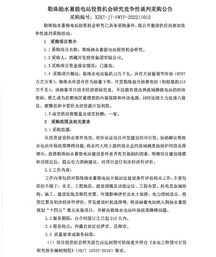勒珠抽水蓄能電站投資機會研究競爭性談判采購公告