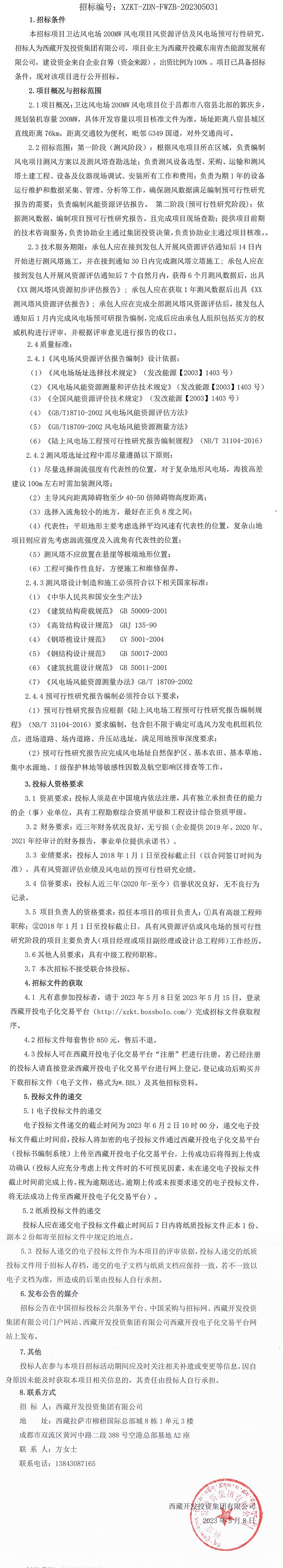衛(wèi)達風(fēng)電場200MW風(fēng)電項目風(fēng)資源評估及風(fēng)電場預(yù)可行性研究招標公告