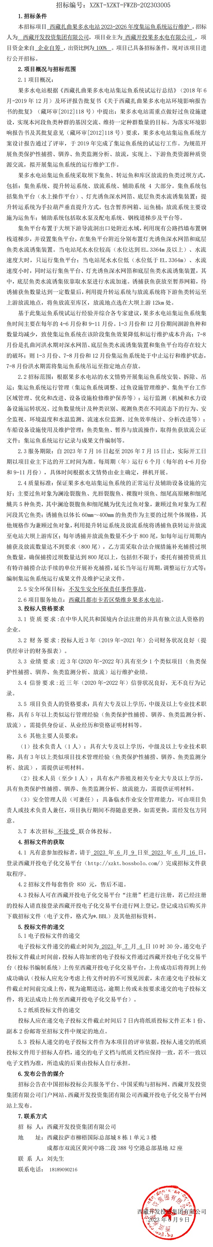 西藏扎曲果多水電站2023-2026年度集運魚系統(tǒng)運行維護招標公告