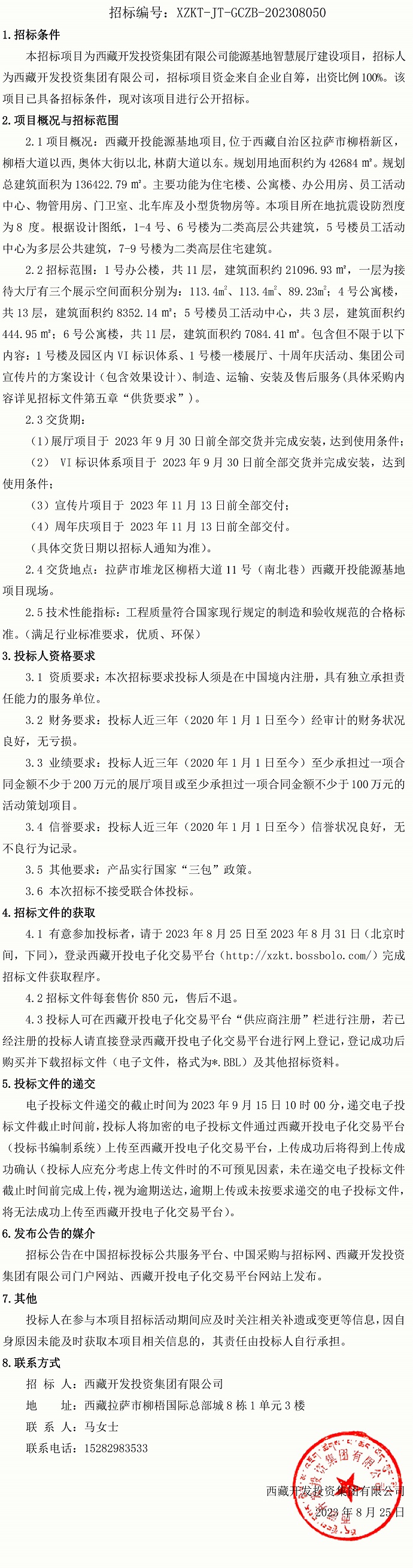 西藏開發(fā)投資集團(tuán)有限公司能源基地智慧展廳建設(shè)項(xiàng)目招標(biāo)公告