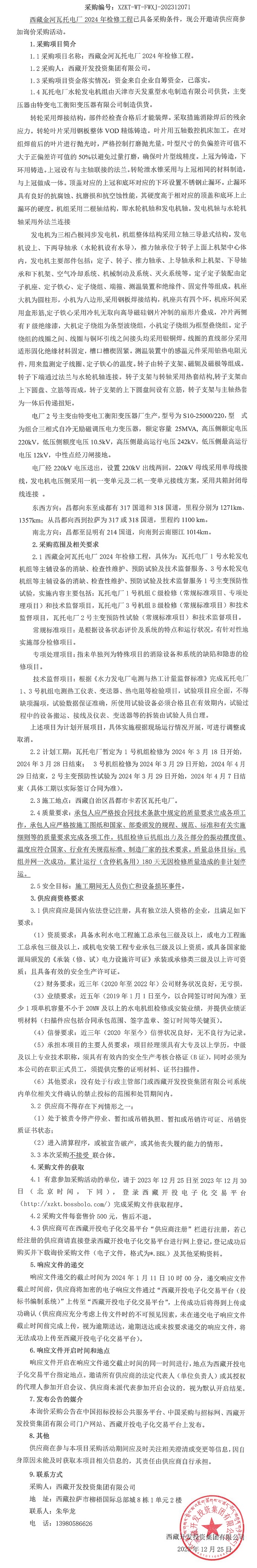 西藏金河瓦托電廠2024年檢修工程