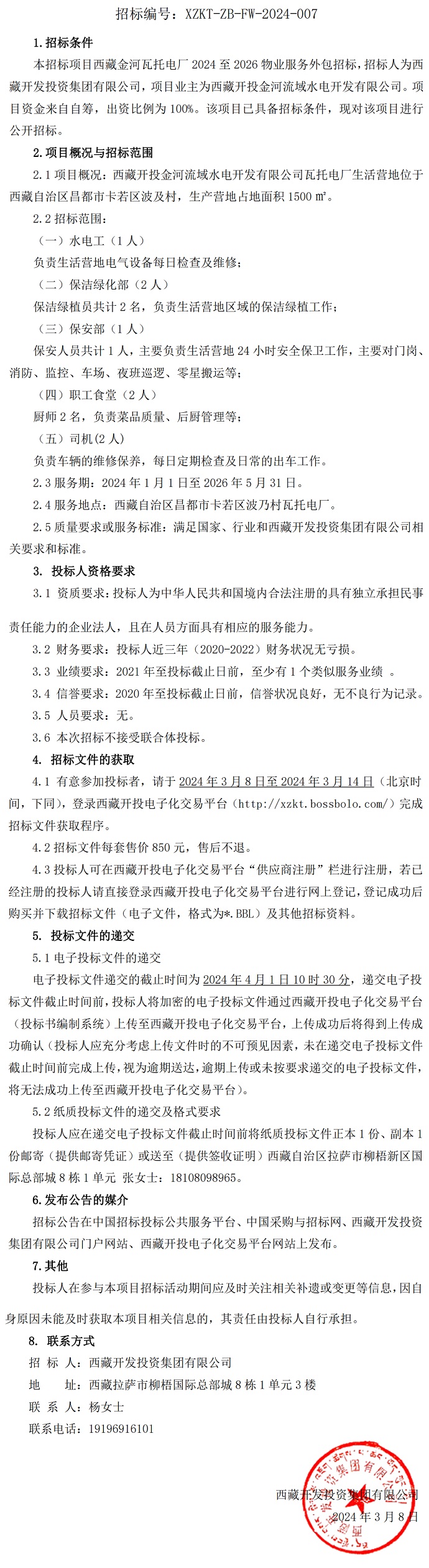 西藏金河瓦托電廠 2024 至 2026 物業(yè)服務(wù)外包招標(biāo)招標(biāo)公告