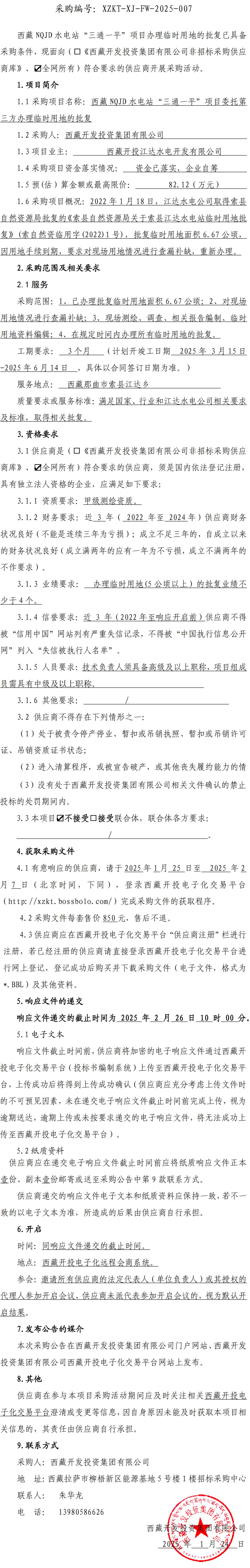 西藏NQJD水電站“三通一平”項(xiàng)目辦理臨時(shí)用地的批復(fù)詢(xún)價(jià)采購(gòu)公告