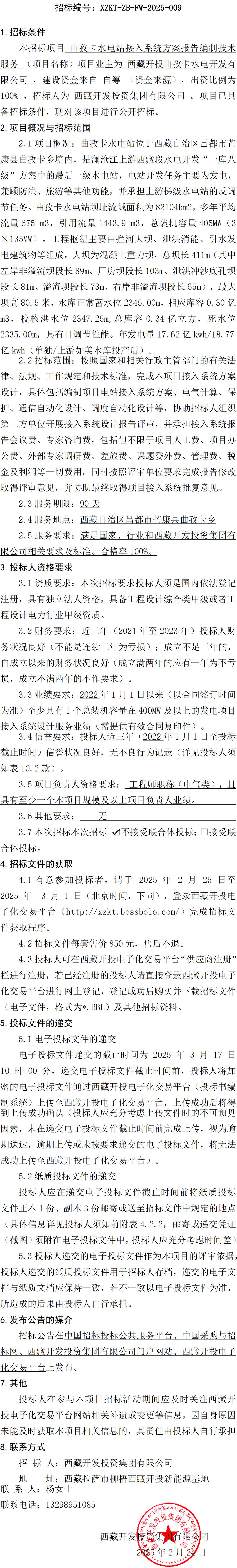 曲孜卡水電站接入系統(tǒng)方案報告編制技術(shù)服務招標公告