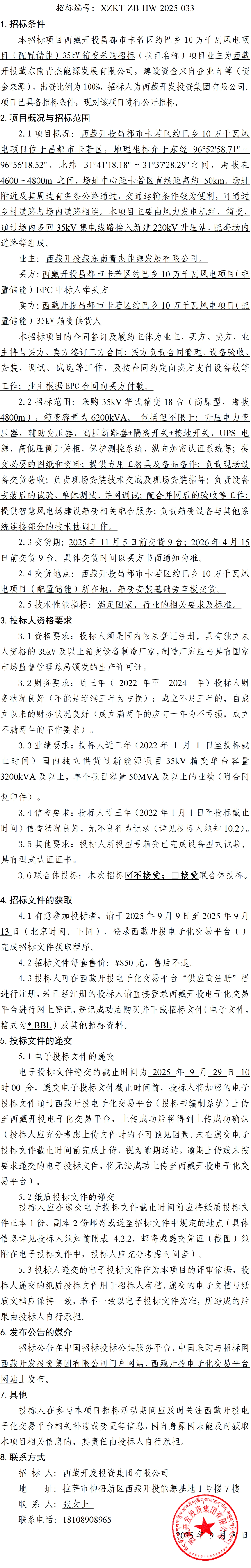 西藏開投昌都市卡若區(qū)約巴鄉(xiāng)10萬千瓦風(fēng)電項(xiàng)目(配置儲能)35kV 箱變采購招標(biāo)公告