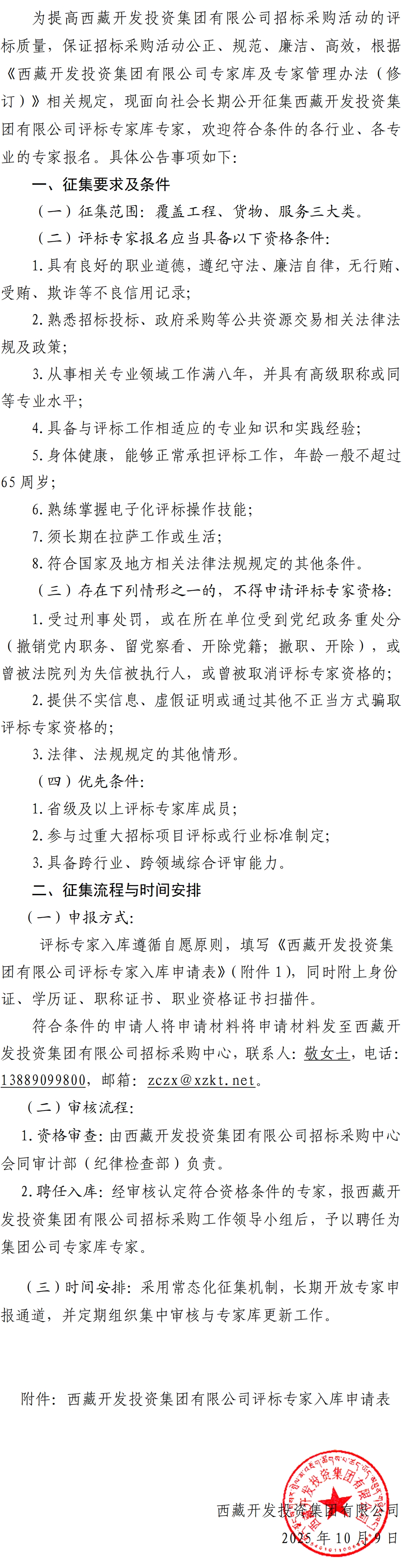 西藏開發(fā)投資集團有限公司評標專家?guī)鞂<艺骷?/strong>