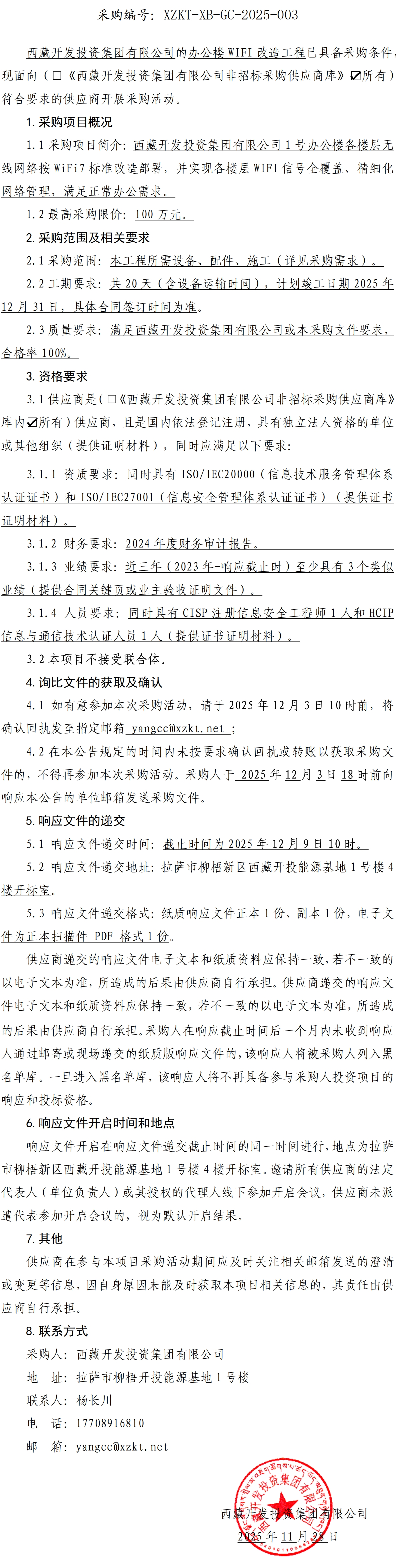 集團(tuán)公司辦公樓WIFI改造工程詢比采購(gòu)公告
